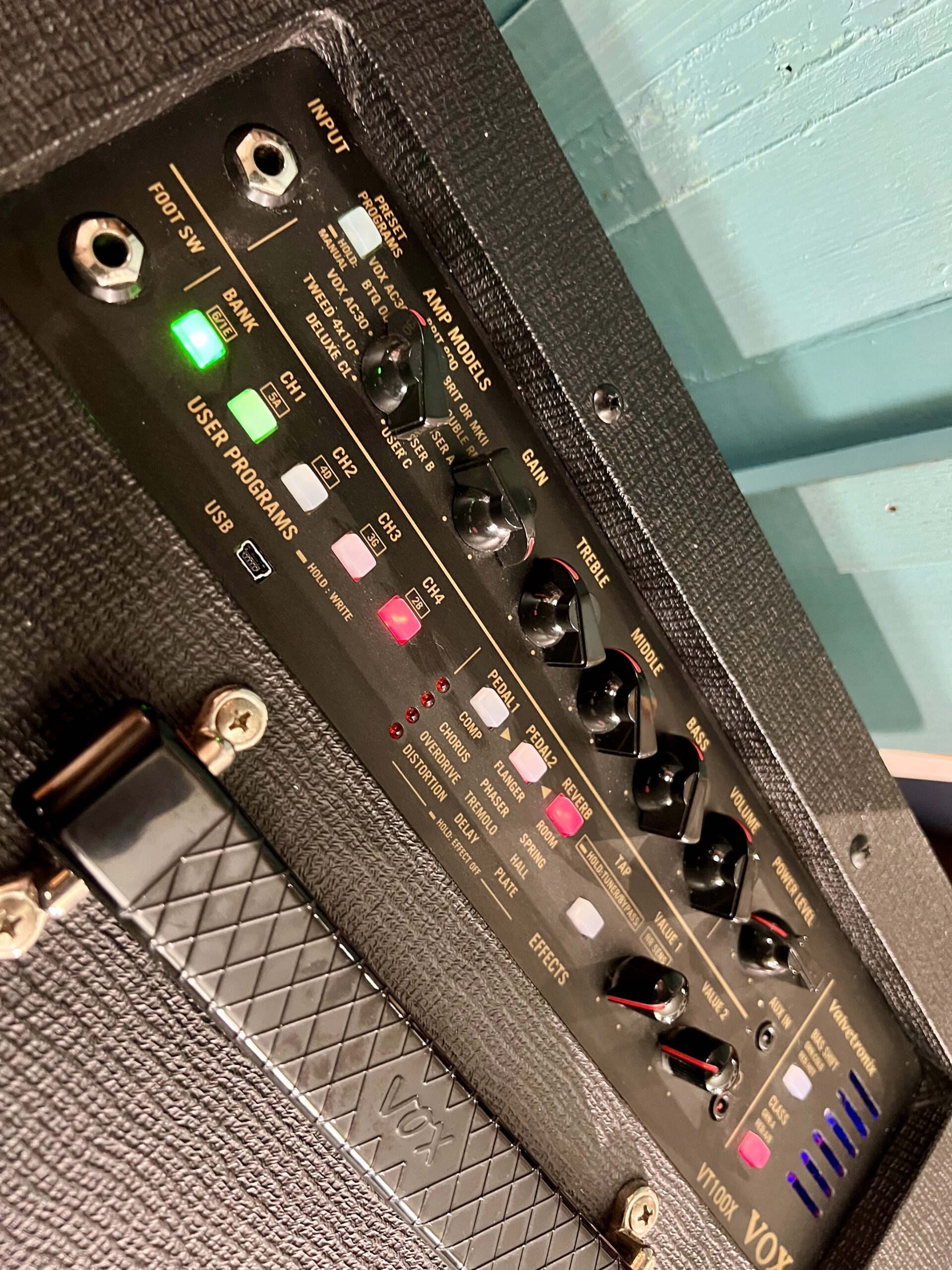 - 100 Watts; 1 x 12” VOX speaker